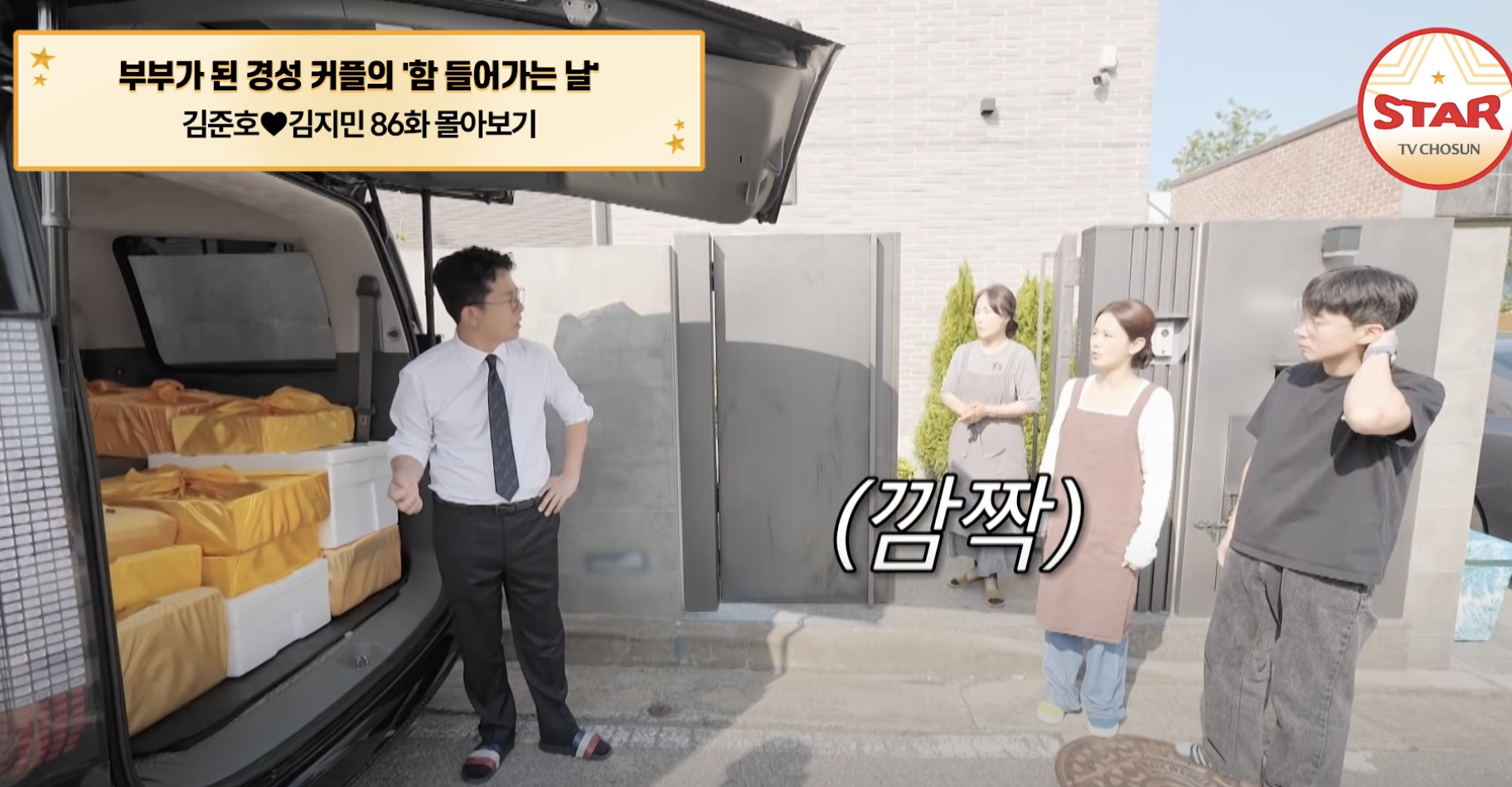 예식 전, 김준호 어머님이 정성껏 준비한 이바지 음식이 화제를 모았는데요. 봉고차 한 대가 가득 찰 정도의 음식들을 직접 준비해 김지민의 본가에 전달하는 장면이 공개되며 많은 이들의 이목을 끌었습니다. 새벽부터 정성을 들여 만든 음식에 김지민과 장모님 모두 놀라움을 감추지 못했고, 진심 어린 마음이 전해지는 따뜻한 순간으로 회자되고 있습니다.