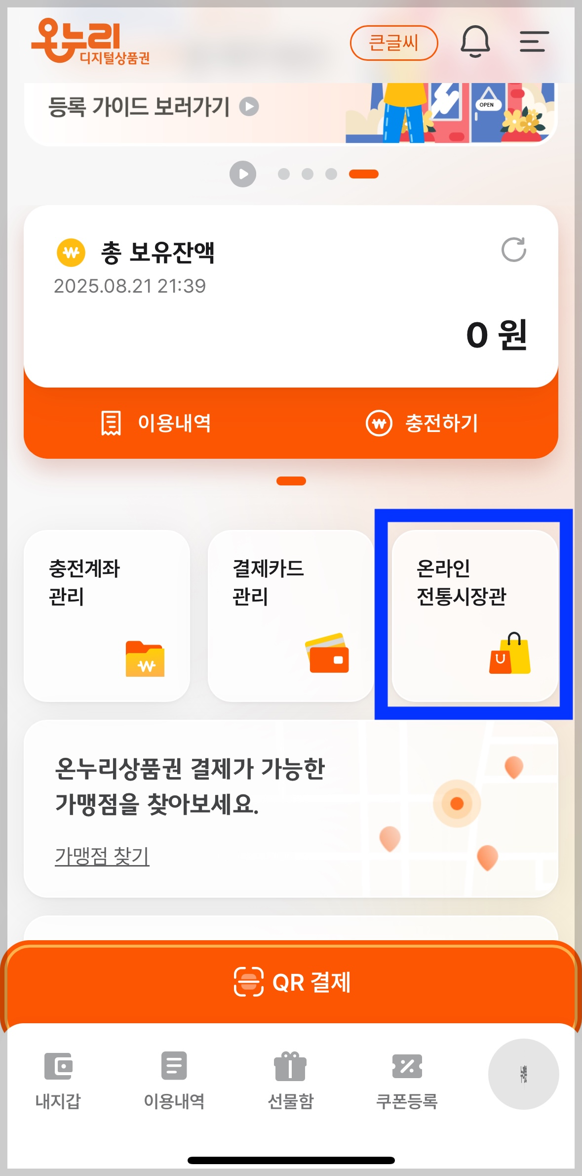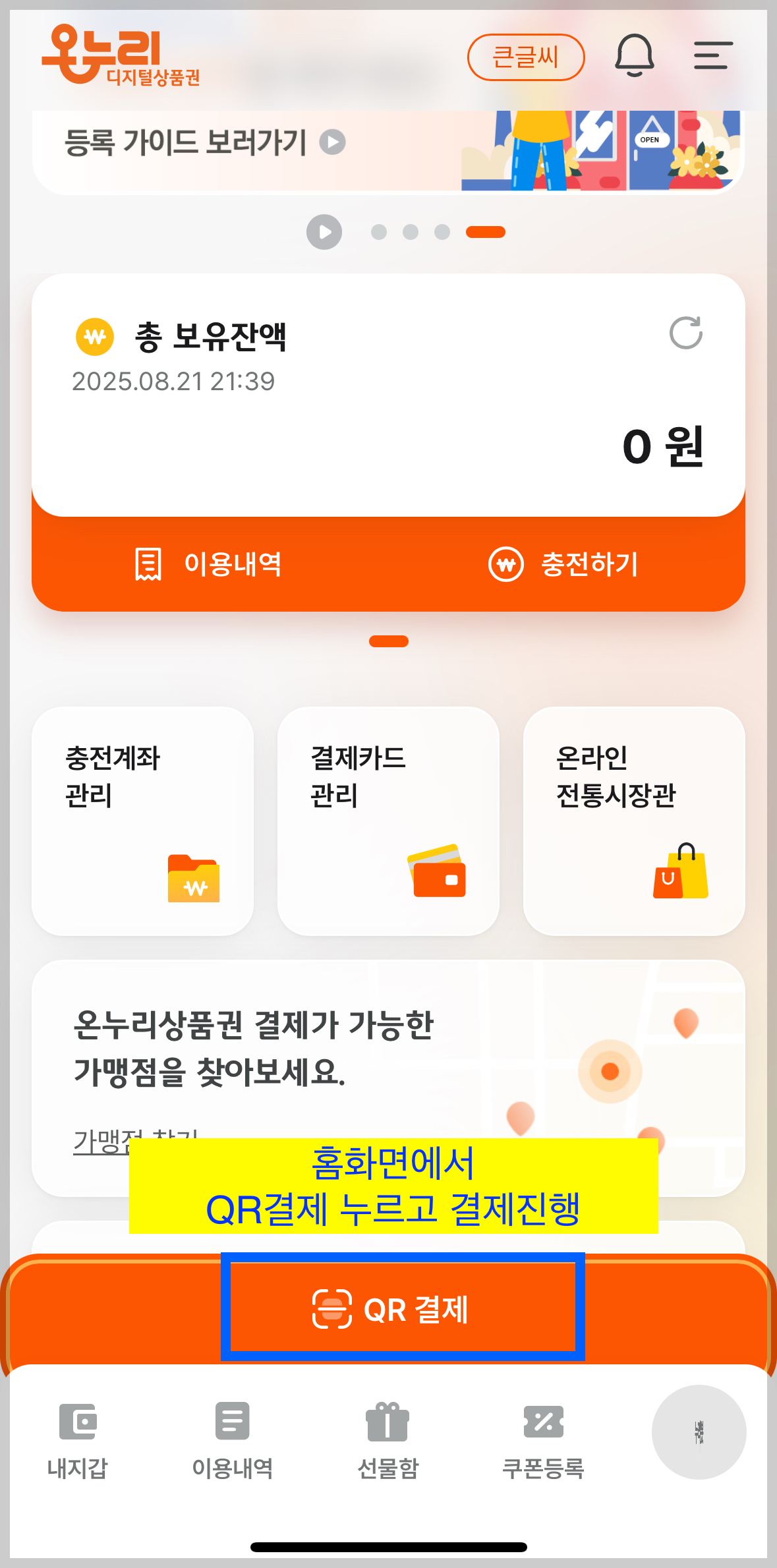 특히 전통시장에서는 모바일 앱에서 결제하기 버튼을 눌러 QR코드를 스캔하면 즉시 차감되어 사용됩니다.