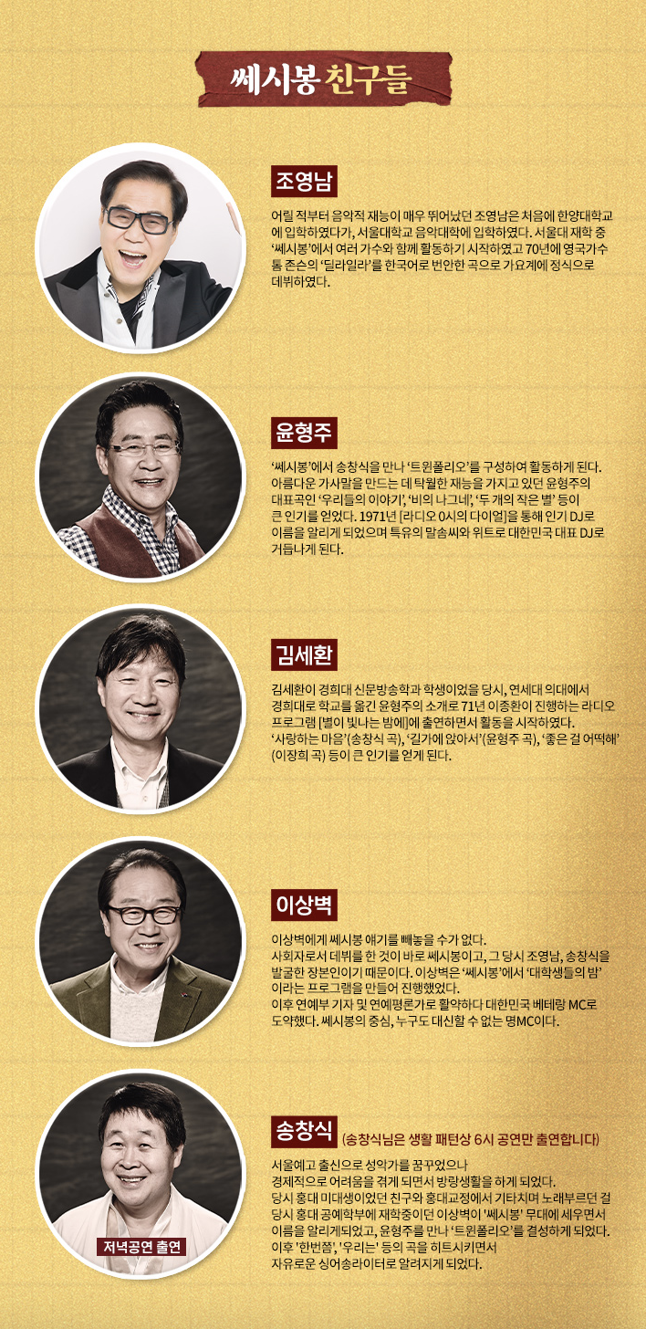 - 송창식: 생활 패턴상 오후 6시 공연 출연